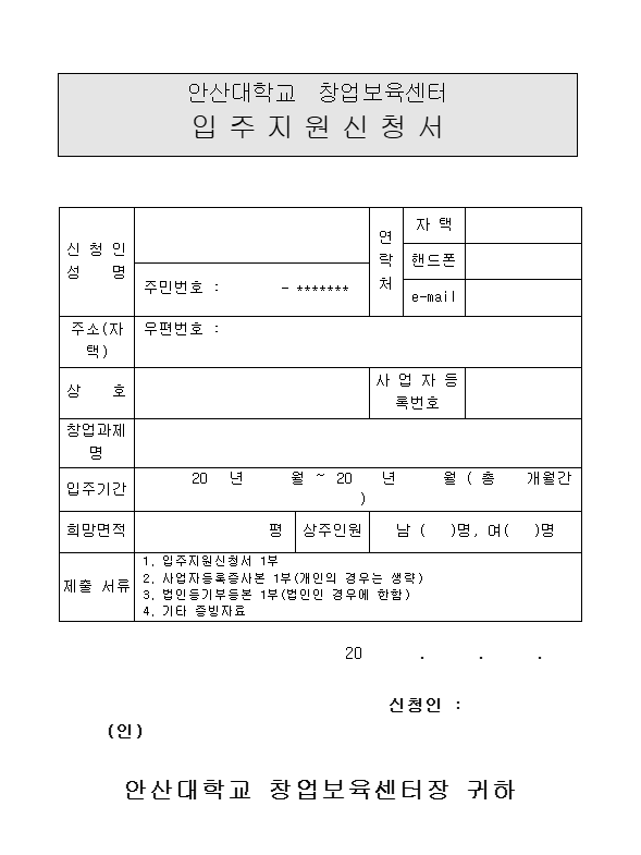 - 제출 서류:입주지원신청서 및 증빙자료 각 1부