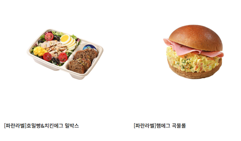 - [파란라벨] 치킨에그 통곡물 샌드위치: 통곡물 빵과 치킨, 에그의 조화가 든든함을 선사합니다.